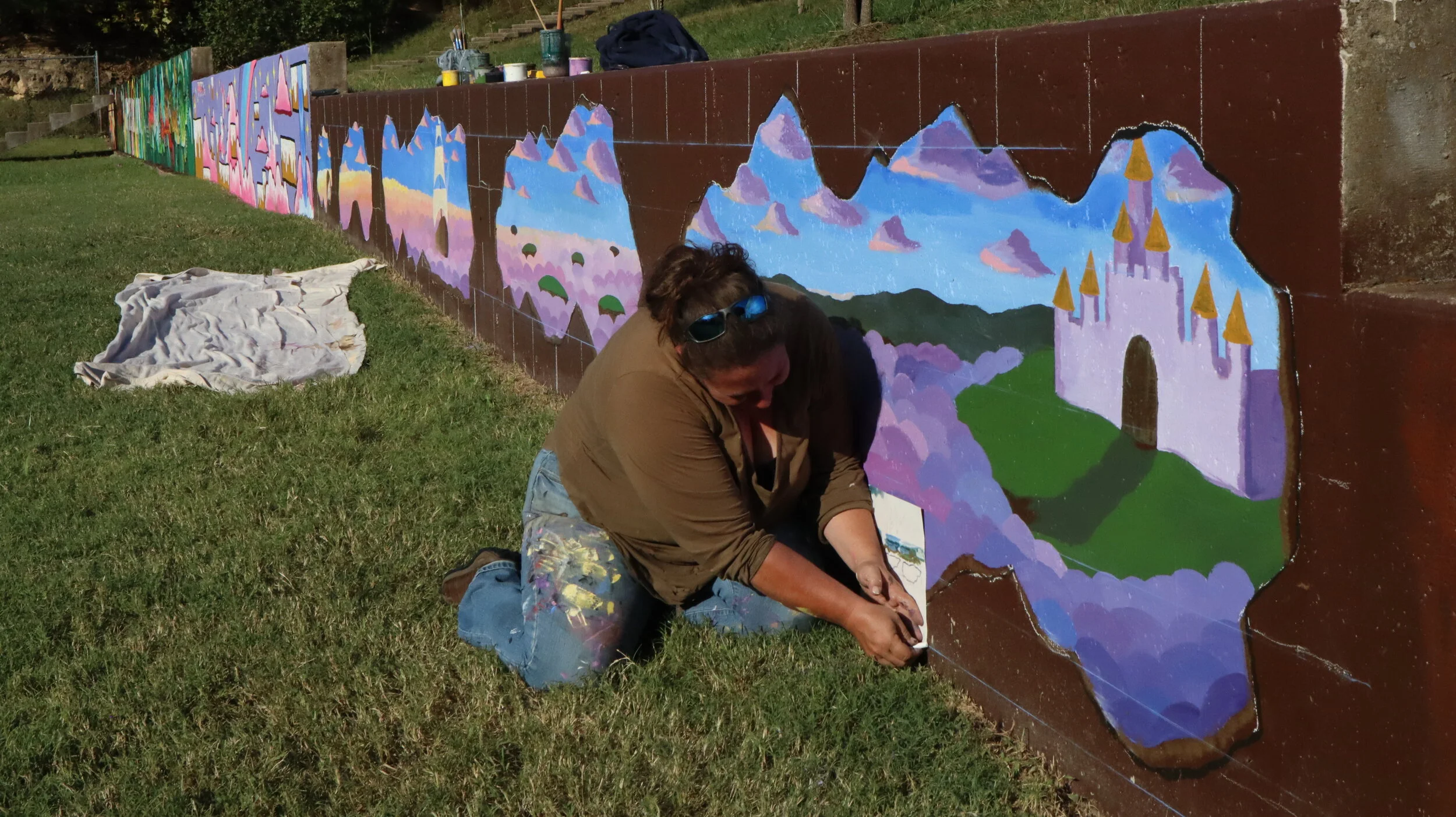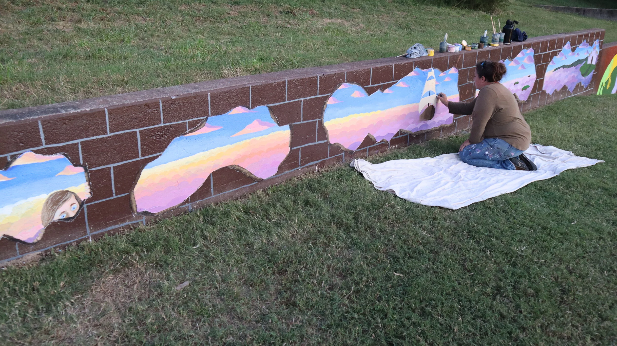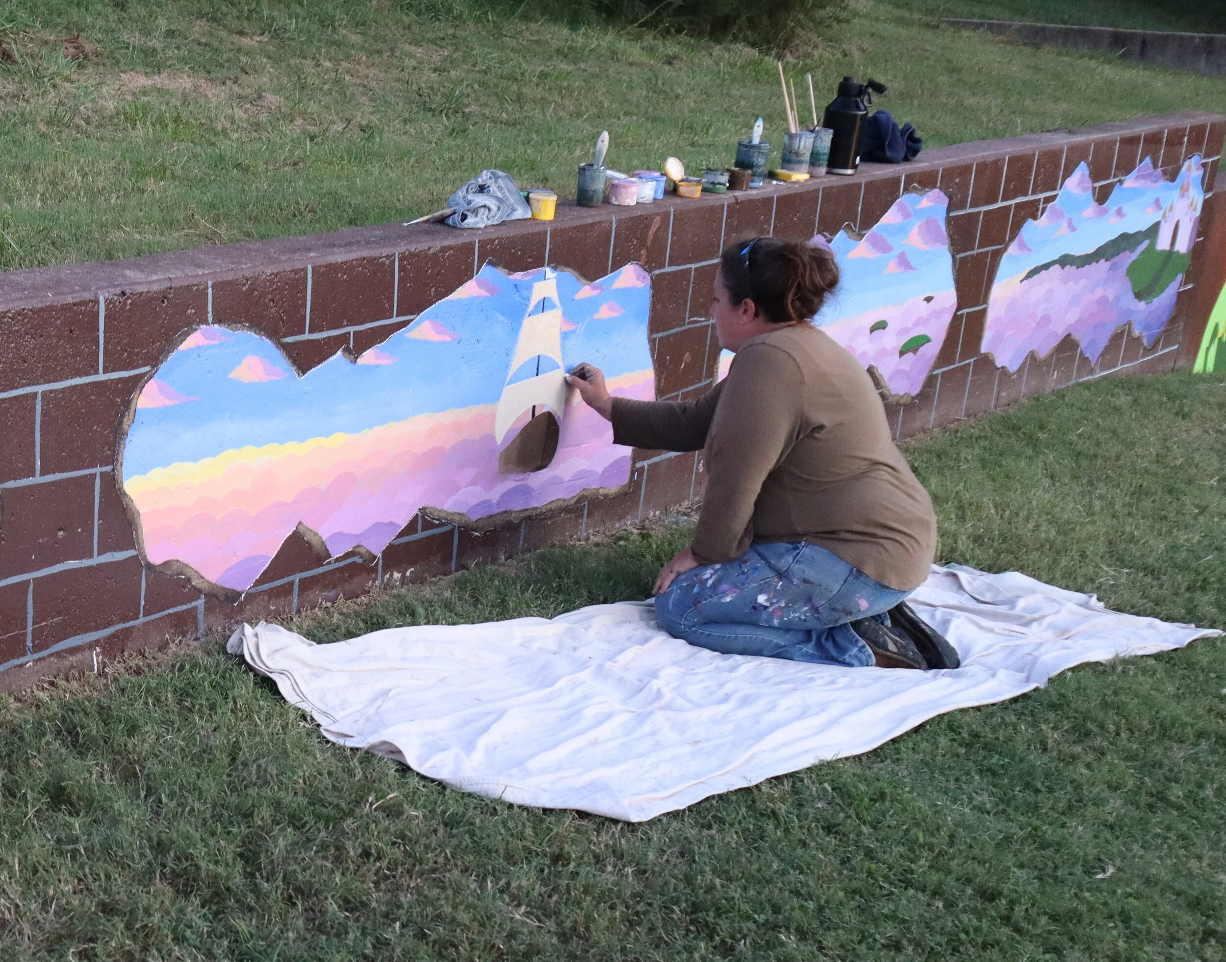 This project was sponsored by the Branson Parks and Rec department and organized through the Southern Missouri Arts Connection to give a facelift to one of Branson’s parks. There were eight artists who came together to paint sections of a 200ft retaining wall. Each artist was given a section and was able to choose their own design.